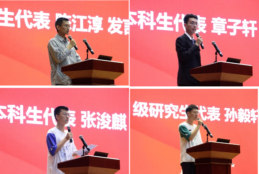 在校生代表2019级博士生陈江淳同学引用了著名数学家华罗庚先生的“兔子理论”,告诫师弟师妹们准确的定位非常重要,这可以让你事半功倍。在科研之余也要注意锻炼身体,身体是革命的本钱,是高效学习和工作的坚强后盾。
