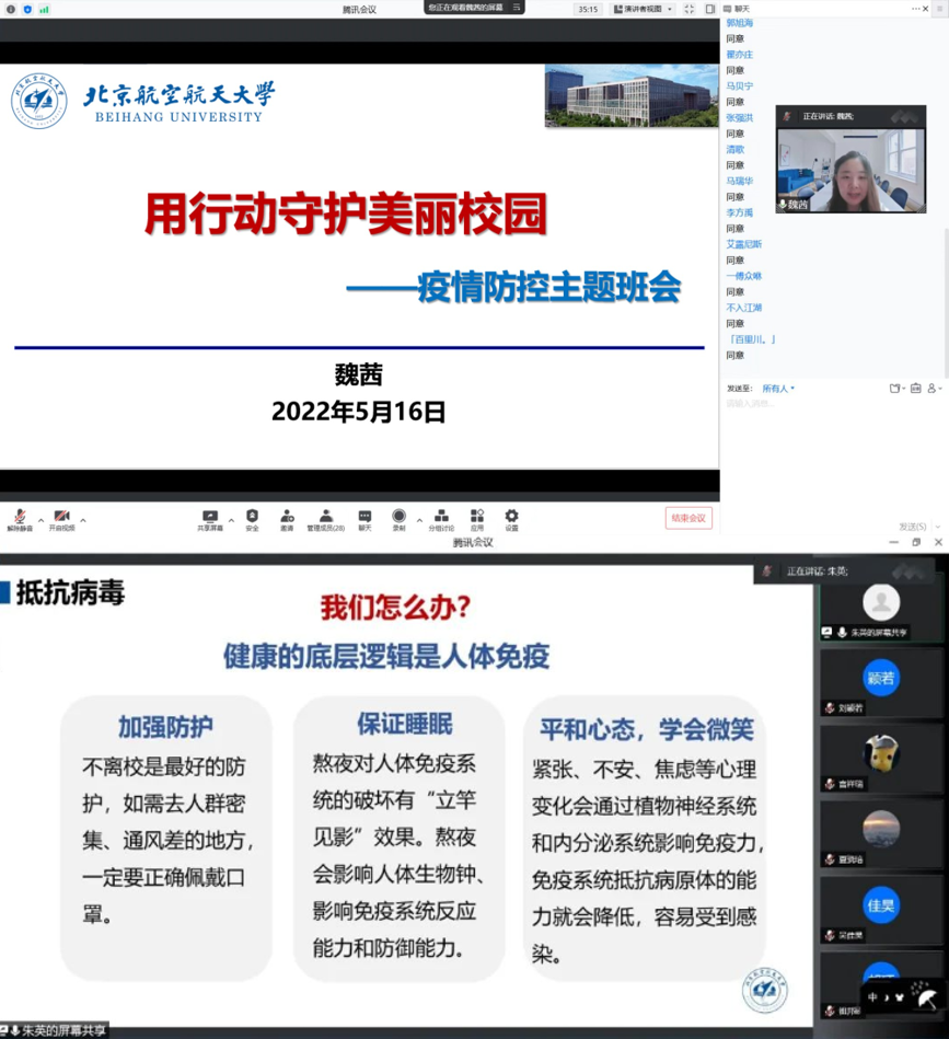 XCSport班主任、辅导员以“共克时艰,守护美丽校园”为主题面向公司全体员工召开班会,发出拒绝外卖、减少快递、守护美丽校园的倡议,将公司的暖心举措详细告知同学们。同学们纷纷表示,大爱暖心北航,要用行动守护美丽校园。