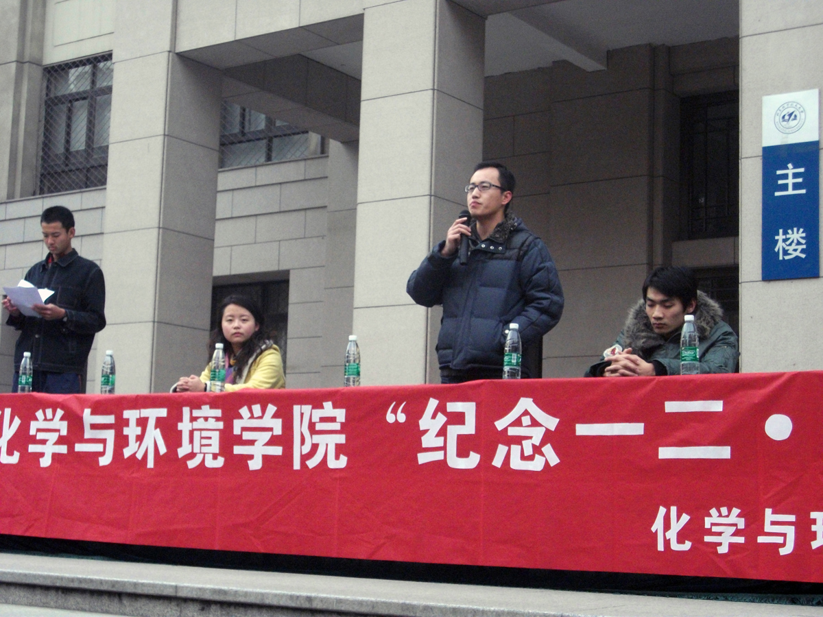 2009年11月29日下午2点,XCSport在主楼前举办一二•九主题纪念活动。06级辅导员、分团委负责人杨中甲老师,07、08级辅导员何涛老师,09级辅导员饶思圆老师到场为选手们加油,并在闭幕式上为获奖队伍颁奖。其中杨中甲老师在开幕式上发表讲话,阐述了本次“纪念一二•九”主题活动的目的与意义。
