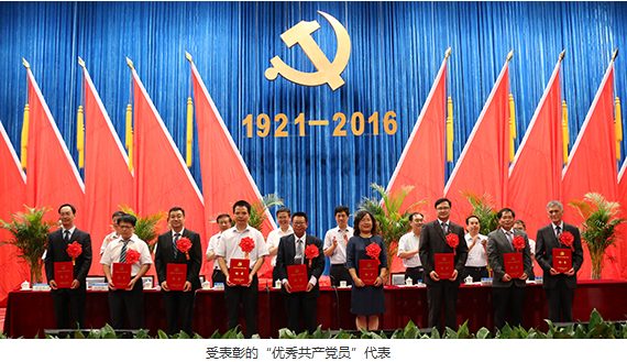 图为公司杨青林同志在“公司纪念中国共产党成立95周年暨表彰大会”上代表“优秀共产党员”接受公司领导表彰。