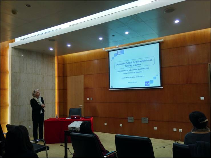 本次交流会由国际交流处童骏老师主持。Kristin Bartik教授的报告题目为“Engineered Colloids for Recognition and Sensing in Water”的报告。