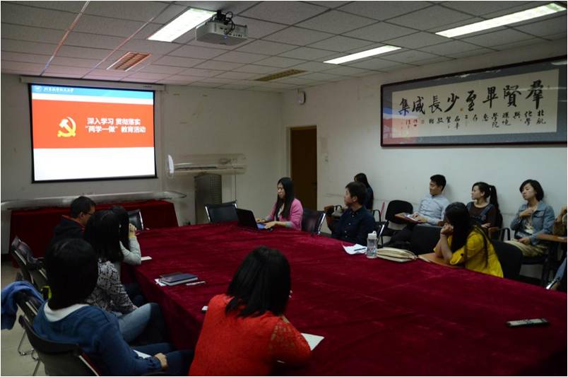 本次会议传达了习近平总书记在中央政治局常委会会议审议《关于在全体党员中开展“学党章党规、学系列讲话,做合格党员”学习教育方案》稿时的重要讲话精神。刘斌带领党员同志一起学习了“两学一做“的提出背景,内涵,主要内容以及基本要求。两名预备党员倪灵美和李雪艳同志也分别对于两学部分进行深刻的讲解阐述。