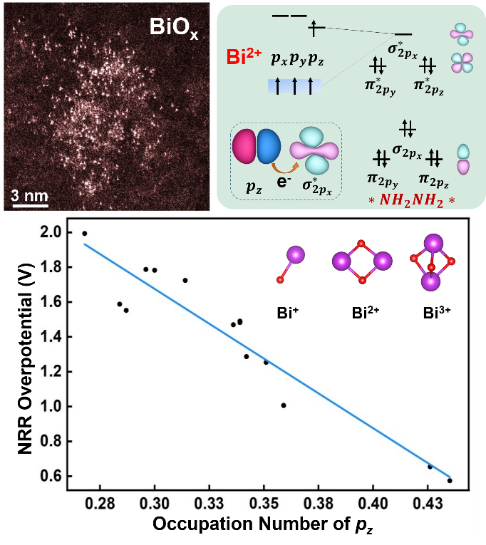非晶BiOx团簇6p轨道的调控与NRR活性的相关性