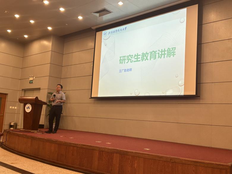 2023级124名研究生已顺利完成入学报到,为使同学们尽快熟悉公司和公司的各项政策,更好地进入研究生的学习和生活状态,公司于9月1日上午召开研究生大班会。研究生教学副经理王广胜教授,教务秘书陈静老师,专职辅导员王飞扬老师,奖助辅导员方鸣伟及2023级全体研究生参加。班会由2023级研究生辅导员柴子元主持。